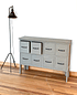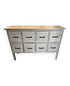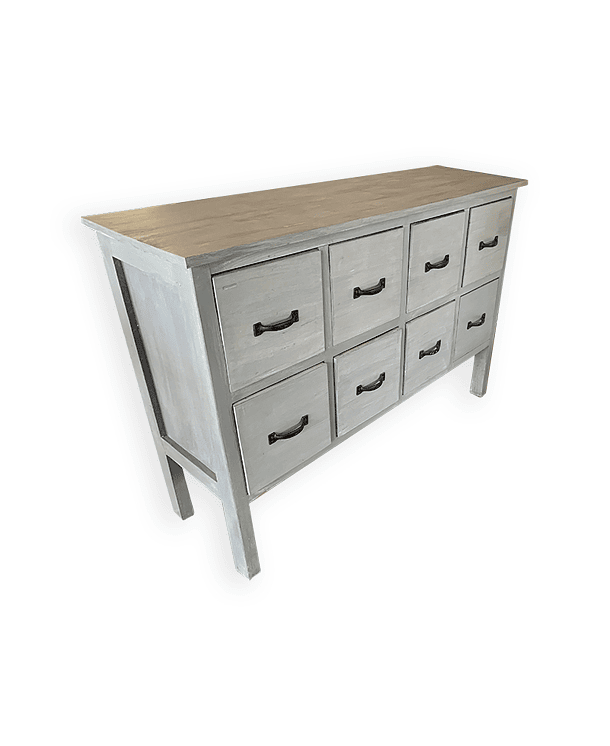 Arrimo de Lenga , 8 cajones en enchape con riel telescópico de metal, color gris con tiradores negros.