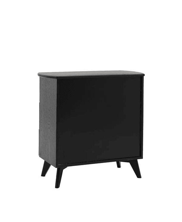 Comoda negra realizada en chapa de encina , lacada negra con junco natural en sus cajones.