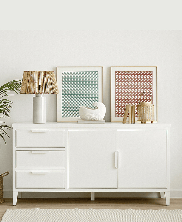 Buffet blanco con cubierta natural