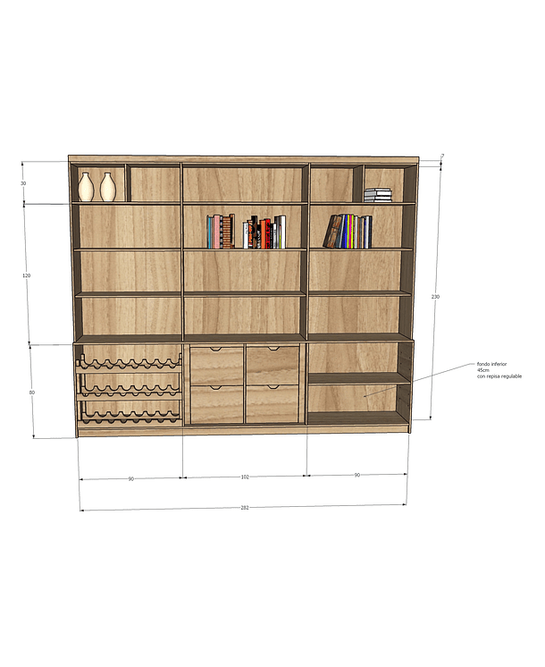 Incluye:Vinero, 6 puertas de vidrios, 2 puertas ranuradas, 4 cajones y luces led
