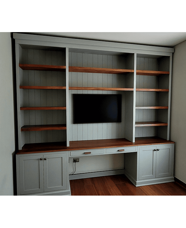 Transforma tu espacio de entretenimiento con nuestro moderno mueble de TV con luz led, que combina repisas en la parte superior para exhibir tus objetos preciados y puertas en la parte inferior para ocultar el desorden.