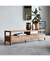 Rack nogal abierto con doble cubierta y 4 cajones, fabricado en lenga y eucalipto.