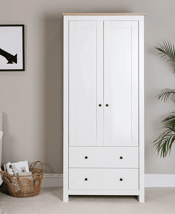 Amplía tu espacio de almacenamiento con nuestro ropero de diseño único, con frentes y laterales en junco que añaden un toque natural y distintivo. Equipado con dos puertas y dos amplios cajones, este ropero combina funcionalidad y estilo en una sola pieza. Organiza tus prendas con elegancia y añade un toque de encanto natural a tu dormitorio con este ropero versátil y espacioso.
