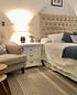 Veladores lenga con cajones enchapados y rieles telescópicos. Mueble Lacado blanco. Cajones con moldura frontal. Tirador color plata.